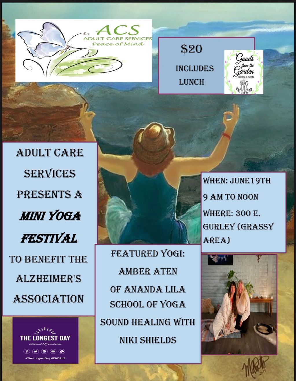 June 2021 1st Annual Yoga Festival and Health Fair. Raised $3000 for the Alzheimer’s Association Longest Day.